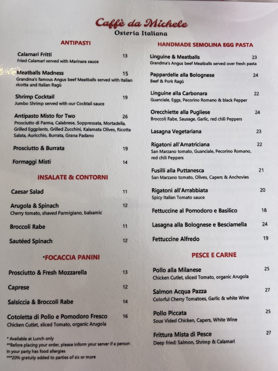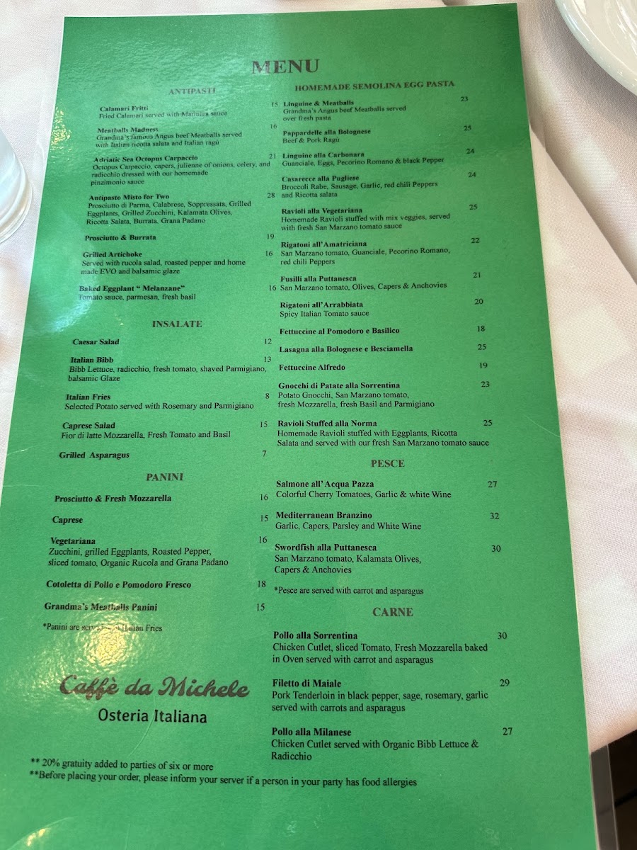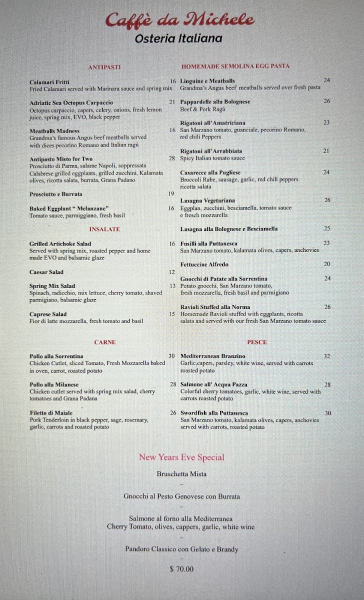 With great service and a warm atmosphere, Caffe' da Michele is the ideal spot for authentic Italian cuisine in a charming setting. Make sure to visit and indulge in their delightful offerings!